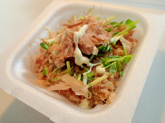 豆苗とツナのおかかマヨかけひきわり納豆 レシピ 作り方 By ぷ みぃまま 楽天レシピ